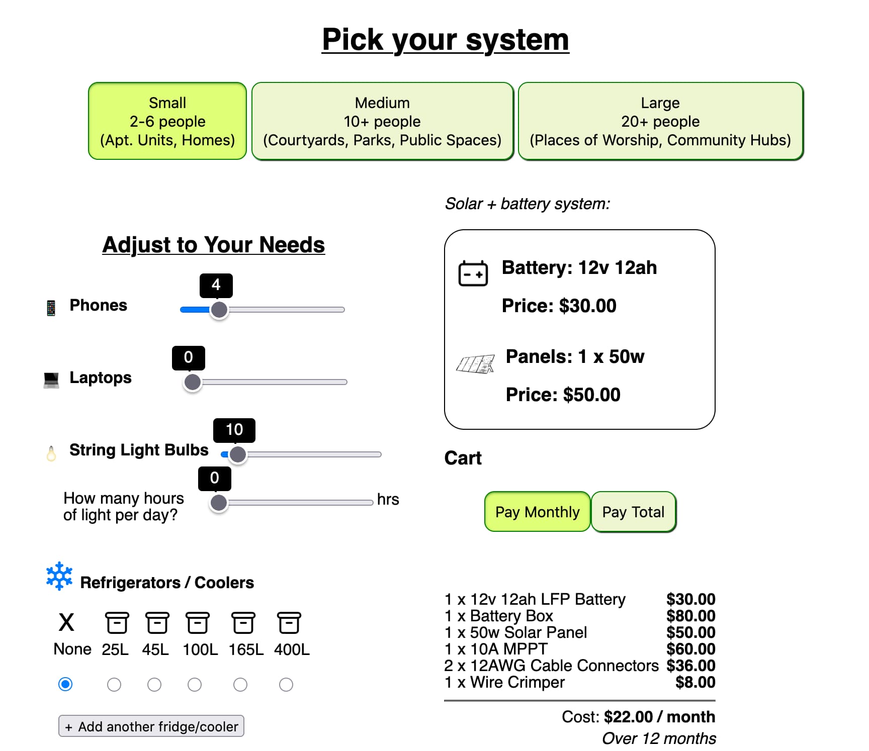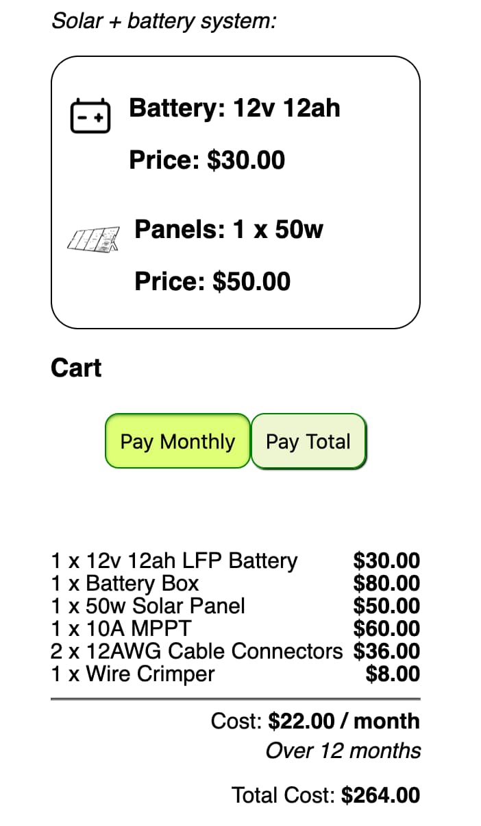 Create a โก local solar hub, with simple equipment